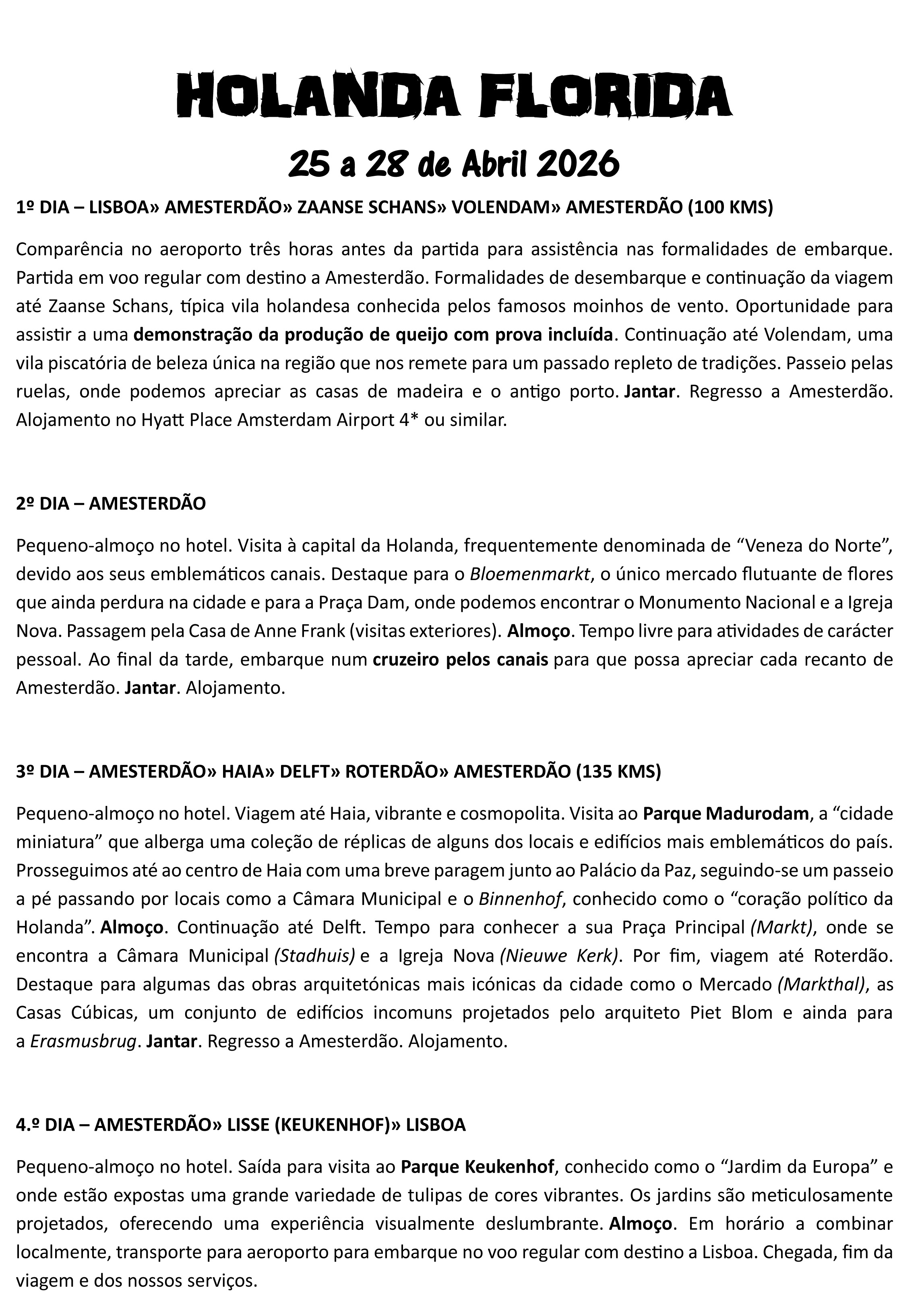 Uma viagem inesquecível pela Holanda combina o colorido dos campos de tulipas de Keukenhof, a imersão histórica nos moinhos de vento, a arquitetura moderna de Roterdão, a elegância de Haia, a miniatura nacional no Madurodam e, claro, provas de queijos tradicionais.