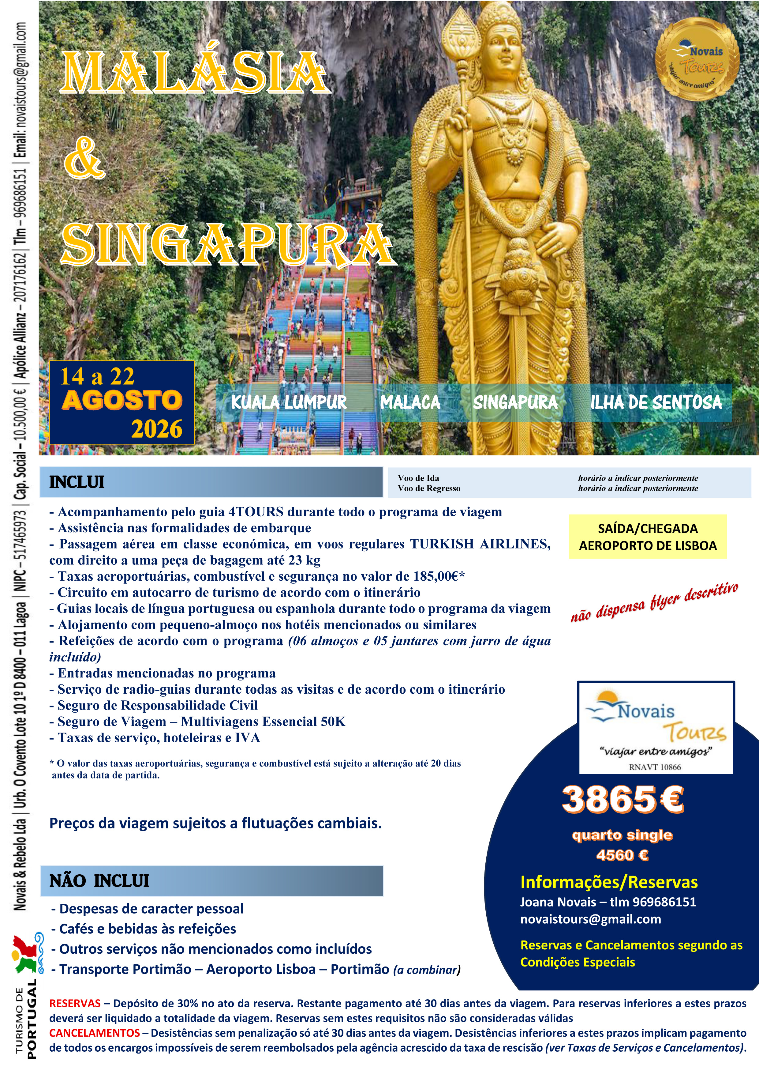 Desfrute de uma viagem inesquecível que combina o melhor de dois mundos. Maravilhe-se com a modernidade futurista de Singapura, com os seus jardins suspensos e Marina Bay, e mergulhe na rica herança cultural de Kuala Lumpur e Malaca. De templos antigos a arranha-céus imponentes, viva uma aventura sensorial no coração do Sudeste Asiático.